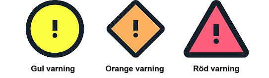 I det förnyade systemet kommer en varning utfärdas när vädret väntas medföra konsekvenser eller störningar i samhället. Systemet har 3 niivåer av varningar, gul varning, orange varning och röd varning som är den allvarligaste graden. De nya varningsnivåerna ger information om hur stora konsekvenser vädret kan medföra. En gul varning ska alltså inte tolkas som en tidigare klass 1-varning.